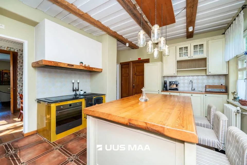 Restaureeritud on ajaloolised aaderdatud viimistlusega sise- ja välisuksed, tsaariaegne hilisklassitsistlik kahhelahi ja mitmed hästi säilinud detailid (uksekell, wc keeratav nuppmehhanismiga lukk, siseuste lingid, köögisaare tasapind). Taastatud on puuküttega pliitahi ja välja ehitatud kaminaga katusekorrus. Köögi varustuses on unikaalne kombo – vana puupliit koos tänapäevase induktsioon pliidiga! Pliidi kohal olev kubu on valminud täielikult käsitööna kogenud metallimeistrite käe all.