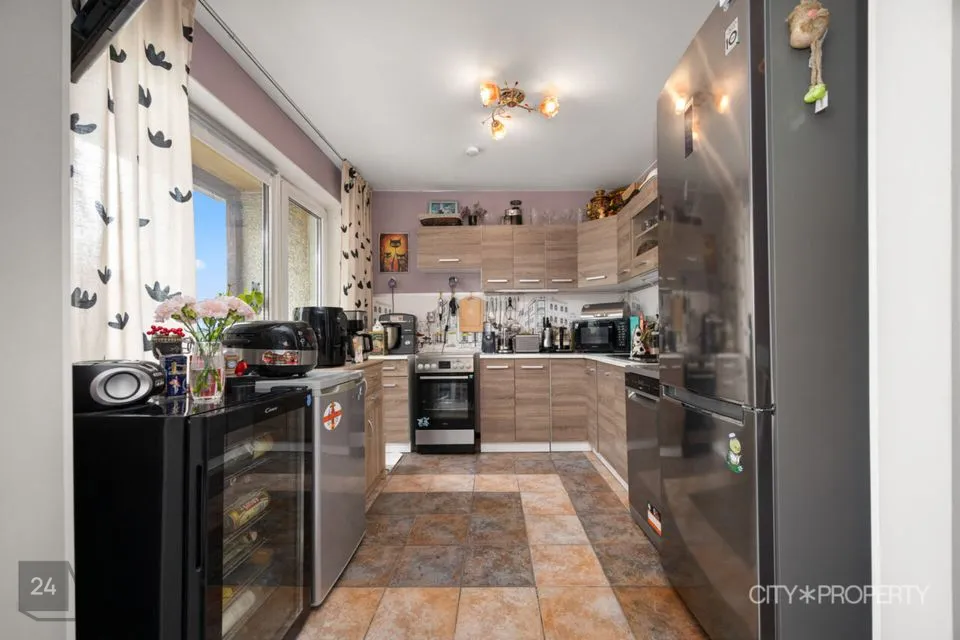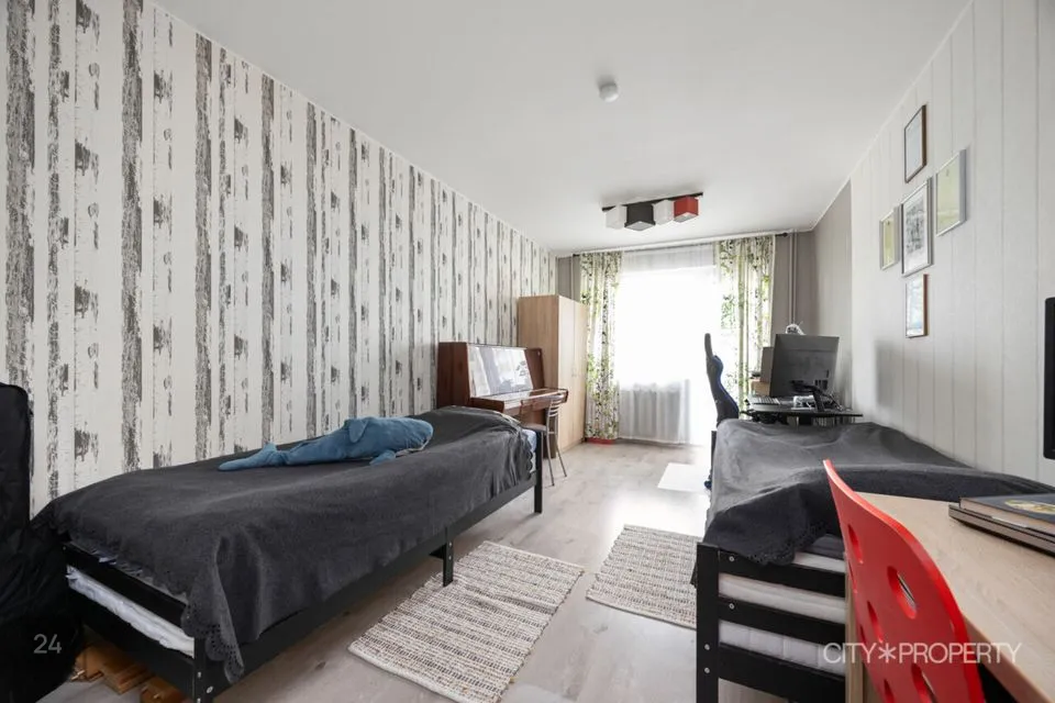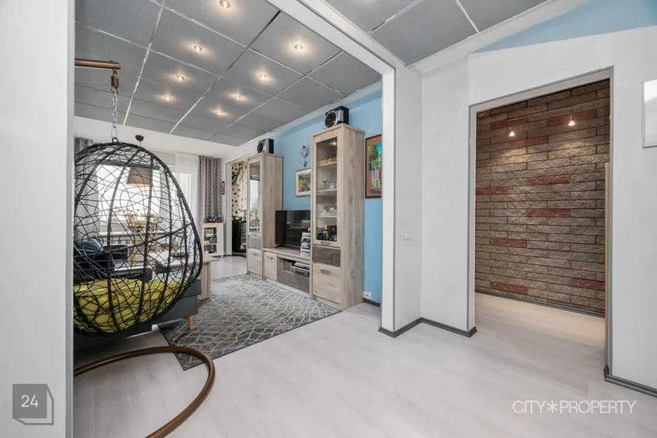 Enamus korteri seinu on värvitud ja osaliselt tapeeditud. Tubade põrandatel laminaatparkett ja köögis ja vannitoas keraamiline plaat. Vannitoas olemas elektripõrandaküte. Tubades on paigaldatud pakettaknad ja kõik siseuksed on vahetatud ning paigaldatud metallist turvavälisuks. Magamistoas on walk-in garderoobiruum, mis mahutab palju vajalikku.