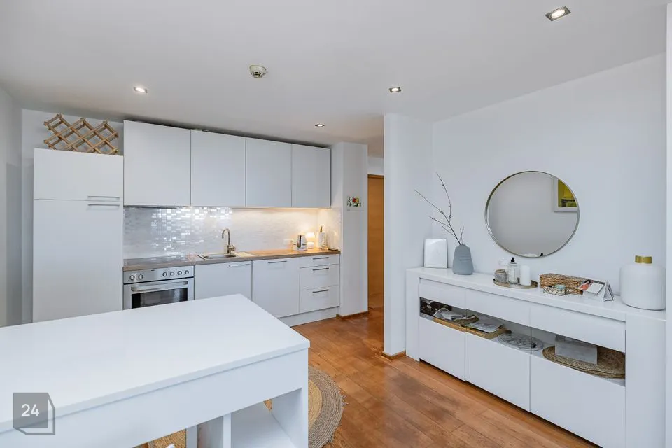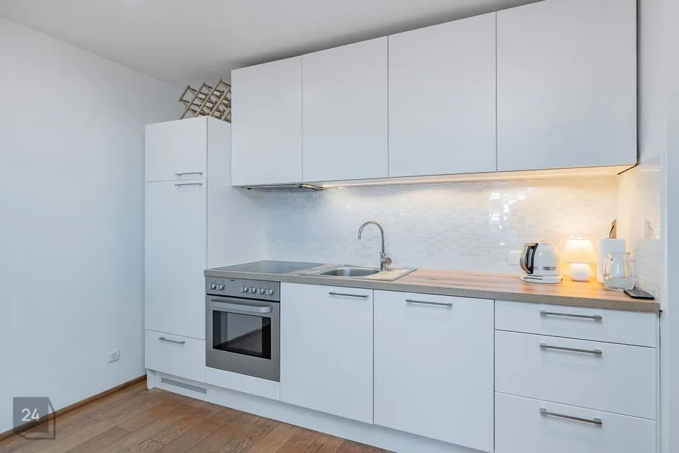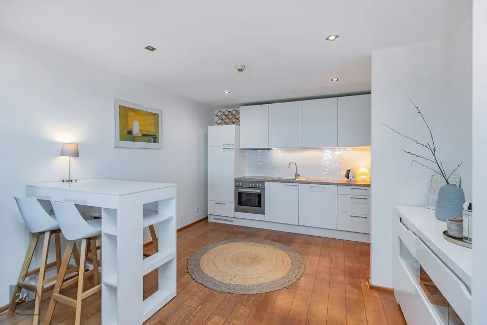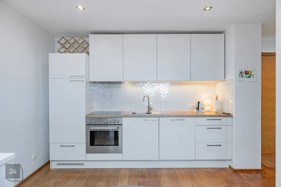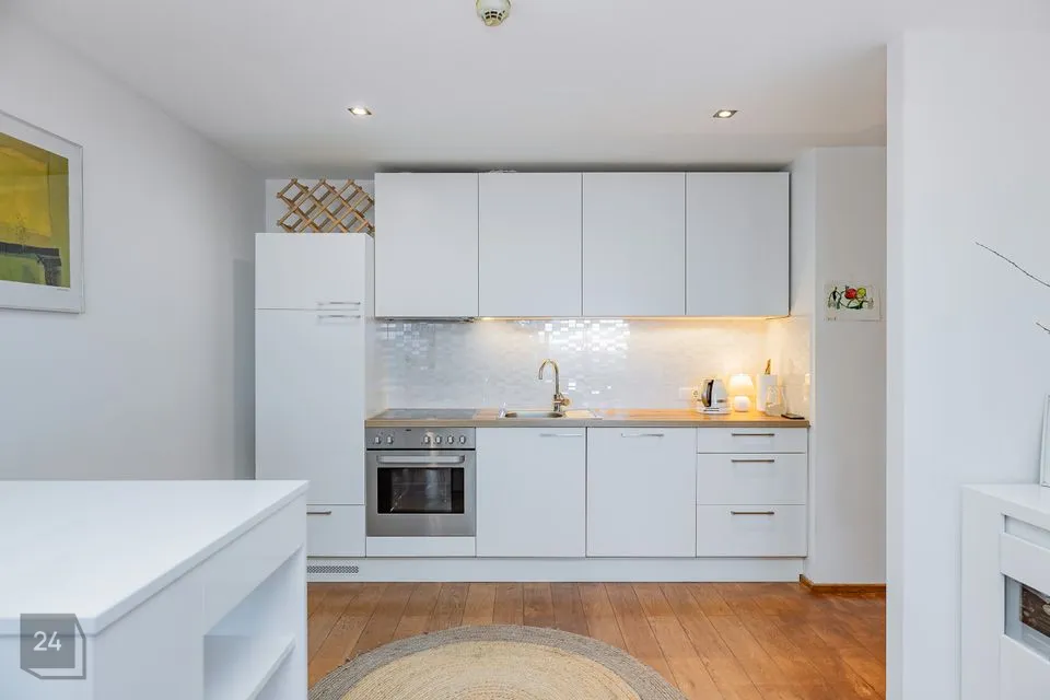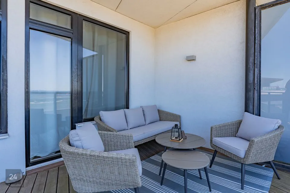 Siseviimistlus ja terrass: Korter on viimistletud kõrgkvaliteetsete materjalidega, põrandatel õlitatud laudparkett. Suurel terrassil on puidust põrandakate.