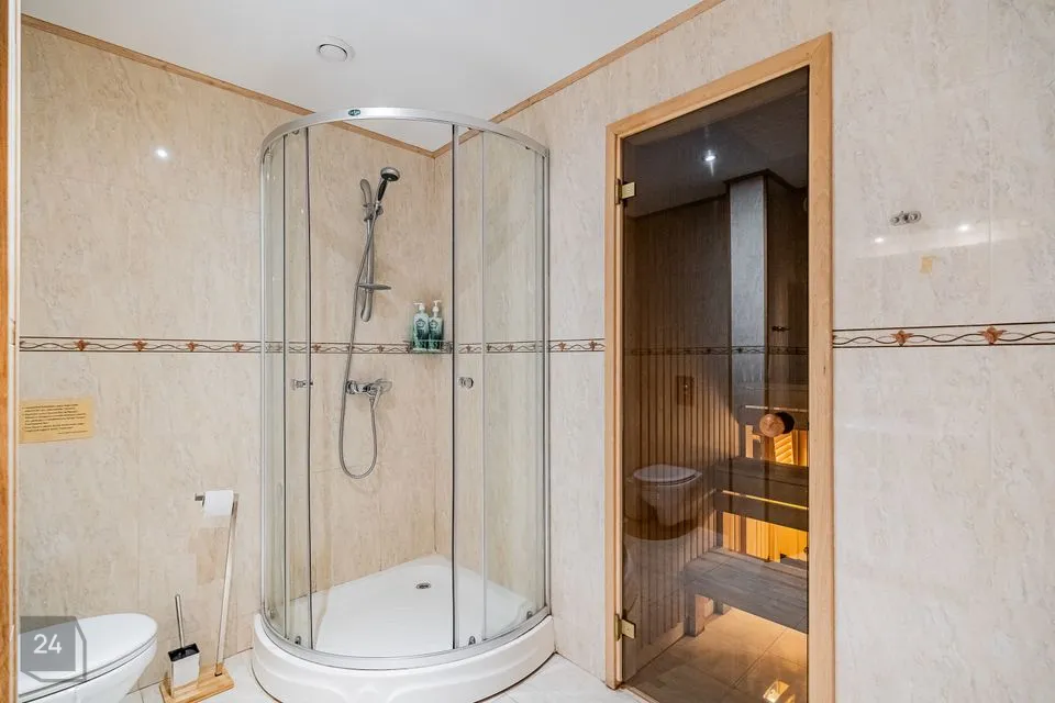 Vannitoad ja saun: Korteris on lisaks saunale eraldi vannituba ja pesuruum, mis on varustatud kvaliteetsete valamukappide ja riiulitega.