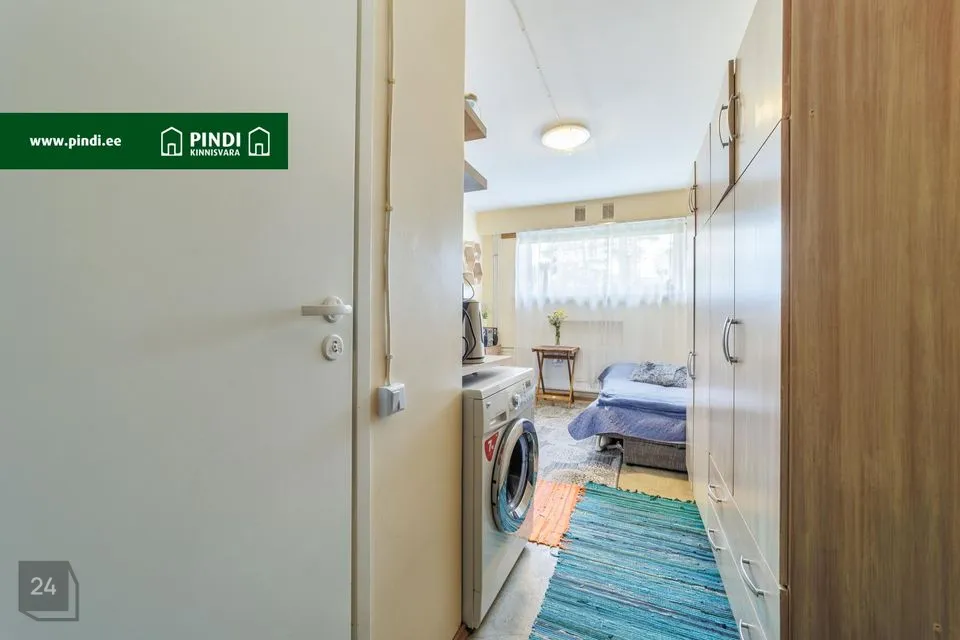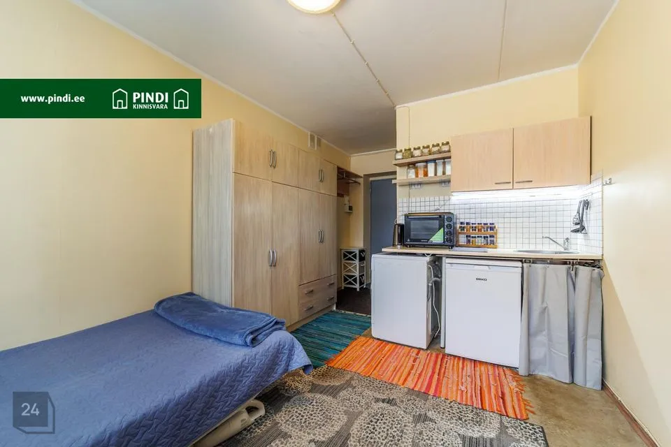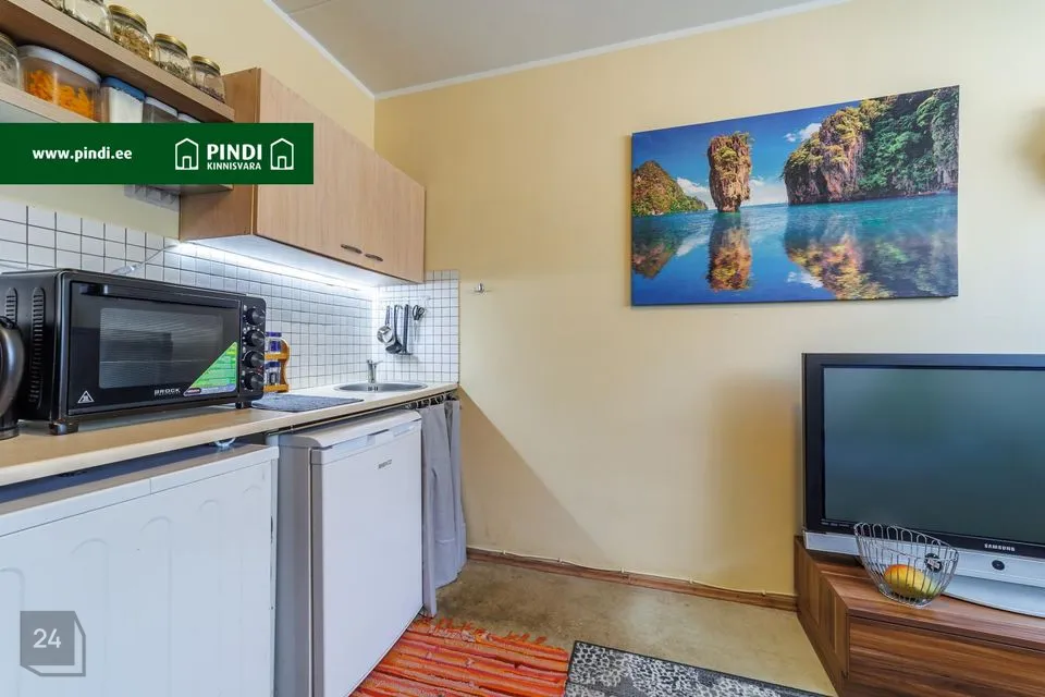 Soe ja hubane stuudiokorter on sisustatud ning olemas kõik eluks vajalik. Kööginurgas on olemas väike külmkapp ja pesumasin.
