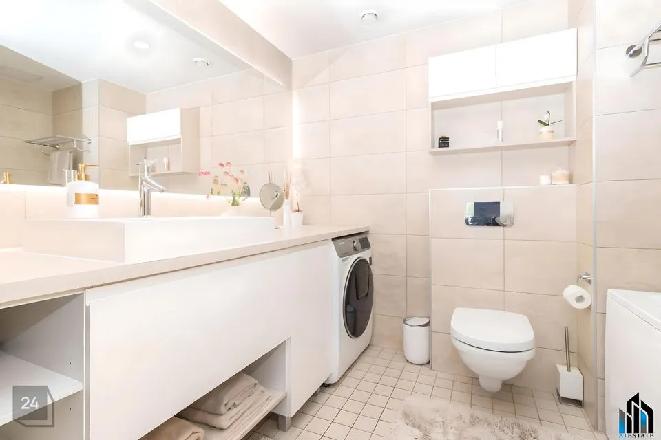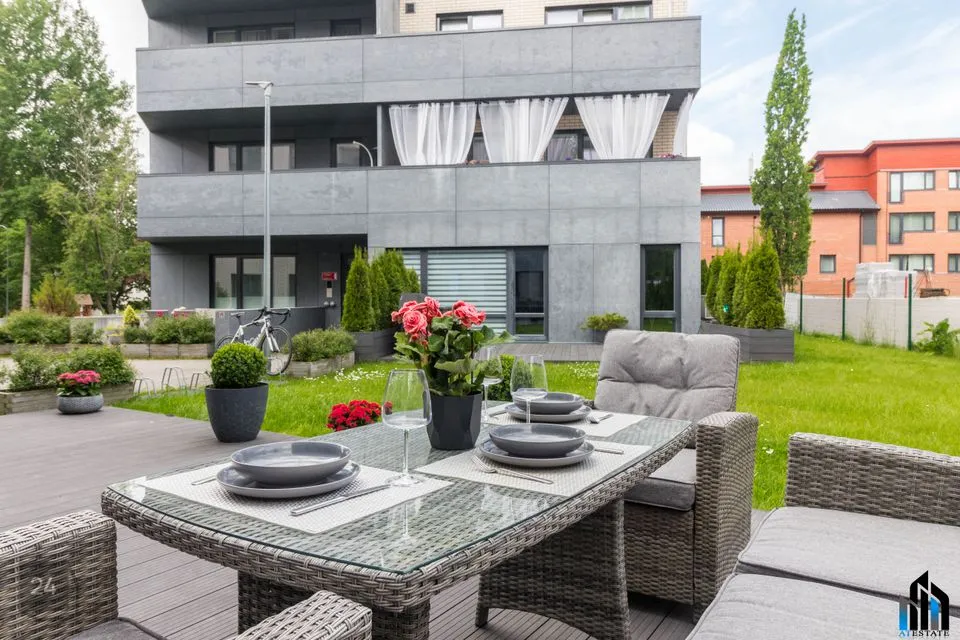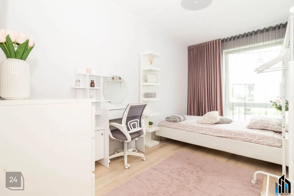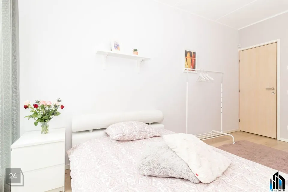 Tegu on hoovipoolse korteriga, see tagab rahu ja vaikuse ka aknaid lahti hoides või terrassil aega veetes - terrassile pääseb mugavalt otse elutoast. Hele siseviimistlus tagab valguskülluse ja soovitud avaruse. Põrandaid katab vastupidav ühelipiline tammeparkett ning toasooja eest hoolitseb vesipõrandaküte - kõik ruumid individuaalselt reguleeritavad. Meeldiva sisekliima tagab korteripõhine soojustagastusega ventilatsioonisüsteem.