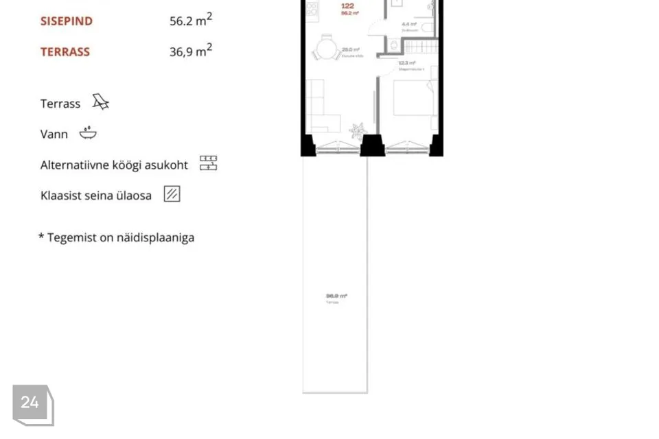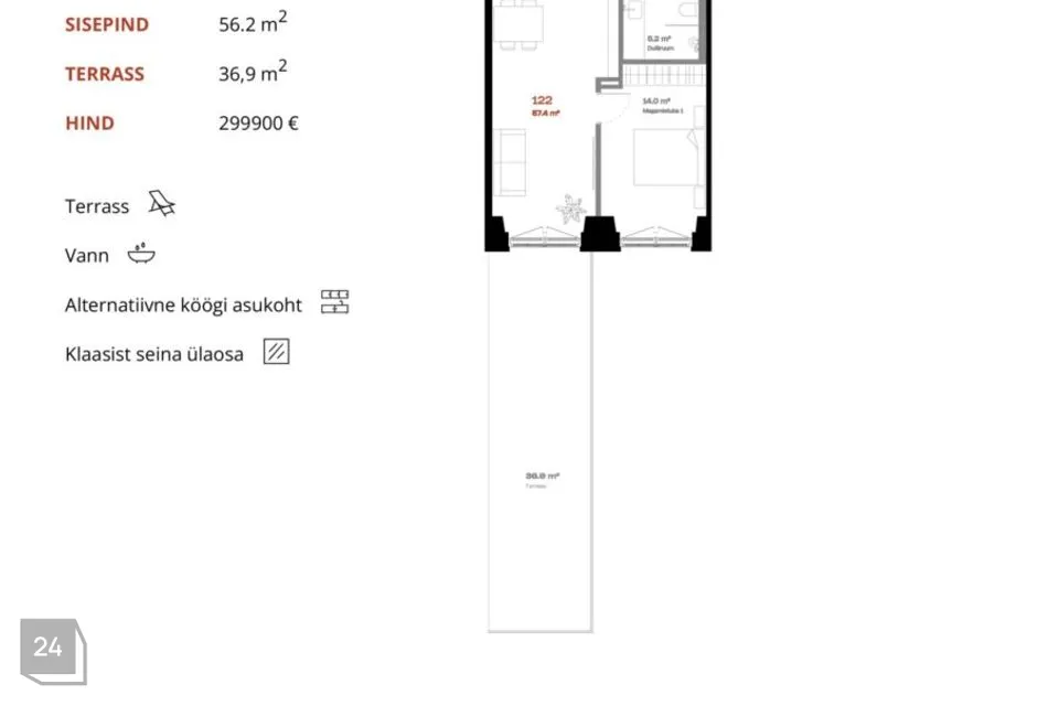 Korteri saab luua nii 2- kui 3-toalisena. Vali ise, kumb sobib paremini sinu elustiiliga! Lisatoa saab eraldada ka klaasist seintega, et säilitada rohkem valgust.