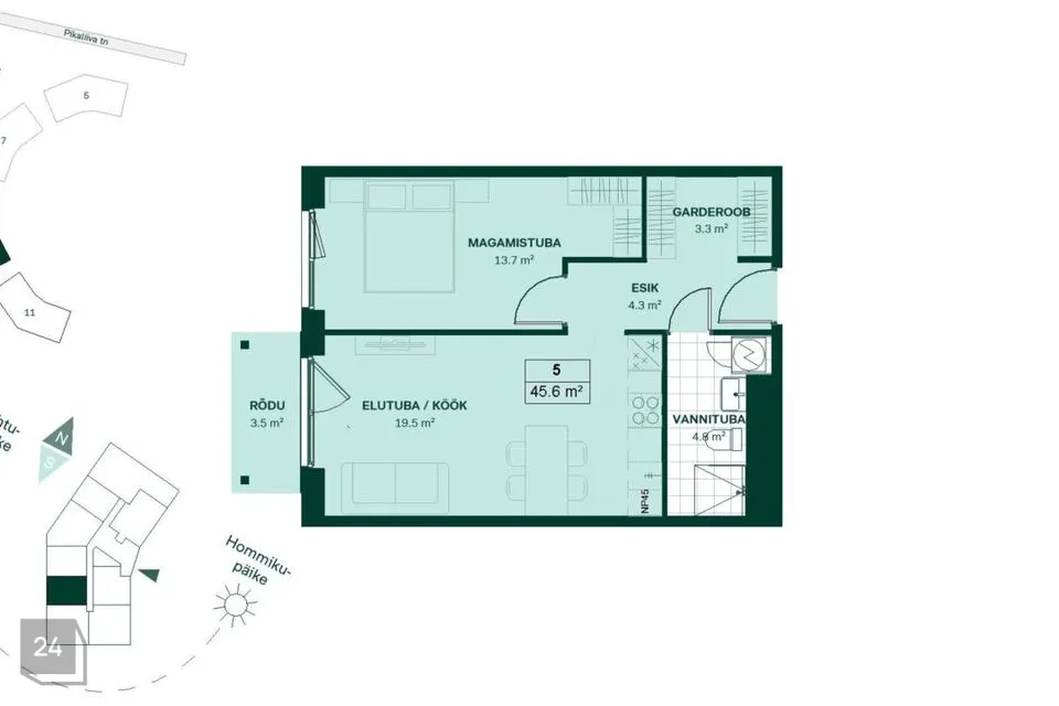 See 45.6 m² suurune korter ühendab kaasaegse arhitektuuri, energiasäästlikkuse ja läbimõeldud ruumilahenduse. A-energiaklass tagab madalad küttekulud ning vesipõrandaküte loob ühtlase ja meeldiva sisekliima. Maast laeni aknad avardavad ruumi ning toovad sisse rohkelt loomulikku valgust.