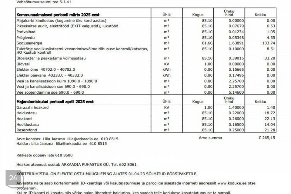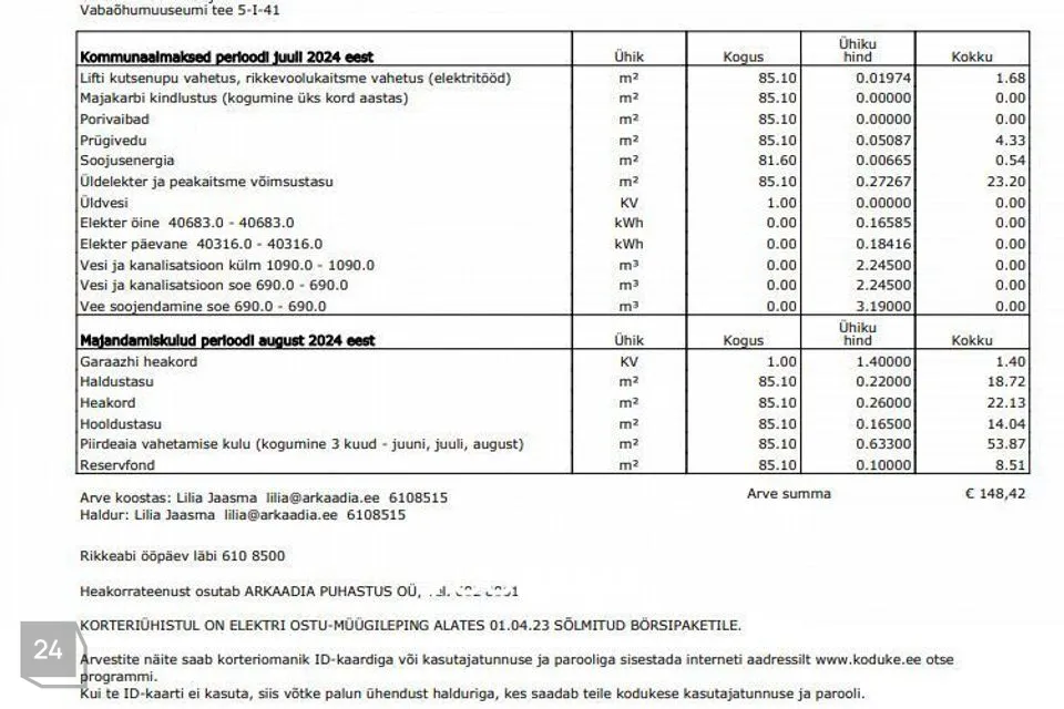 Kommunaalid mõistlikud - jäädes suvel 150€ juurde ja talvel 260€ juurde. Näidised arvetest on lisatud galeriisse.