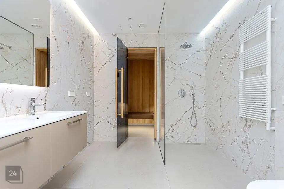 Teisel tasapinnal asuvad 2 pesuruumi (sh vanniga vannituba), saun ning kolm magamistuba. Peamisest magamistoast on pääs suurele päikeselisele rõdule.