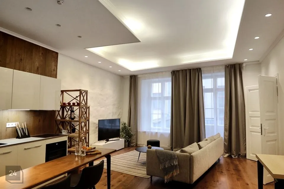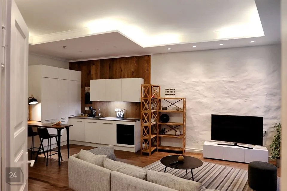 Korter ise on planeeringult avar, kõrgete lagedega, praktiline ning asukohale vastavalt väga unikaalne. Viimistluseks on kasutatud heledaid värvi- ja puidutoone, mis sobivad suurepäraselt korteri originaalis olnud seintega. Need loovad imetabase koosluse ajaloohõngulisse miljöösse.