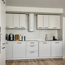 Avar köök on ühendatud elutoaga, moodustades avatud ja hubase eluruumi, ideaalne perele või külalistele.