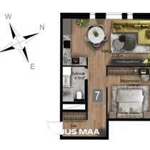 Hoolikalt läbimõeldud planeering. Korteri aknad avanevad kahte ilmakaarde – kirde ja loode suunas, mis tagab loomuliku valguse nii hommikul kui ka õhtul.