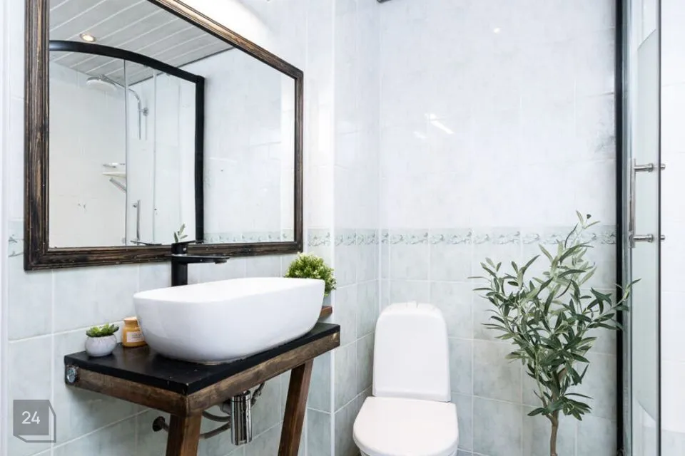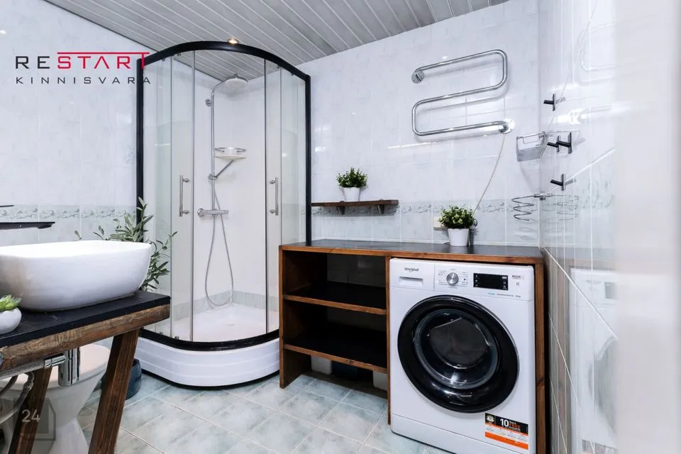 Vannituba on tõeliselt ruumikas, seal on olemas kõik vajalik igapäevaseks mugavuseks ning ruumi jääb ka liikumiseks ja praktiliseks hoiustamiseks.
