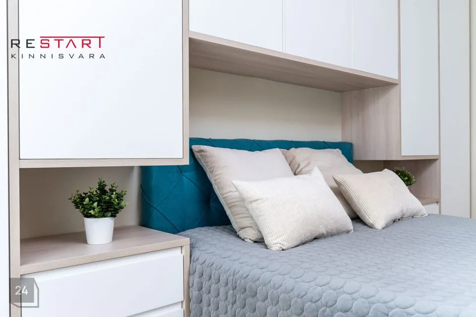 Suurem magamistuba pakub rahulikku puhkekohta ja seal asub ka mugav walk-in garderoob, mis aitab hoida kodu korras ja organiseerituna. Teises toas on praktiline täislahendusega kapisüsteem kogu seina ulatuses – ideaalne lahendus panipaigaks või garderoobiks, mis jätab ruumi ka muuks sisustuseks.