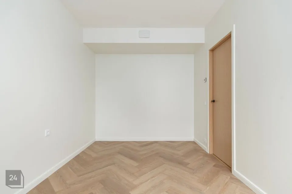 Põrandaid katab kallim naturaalne tammetooni kalasabaparkett koos seinte tooni põrandaliistudega. Vannitoas on põrandal ja seintel halli tooni keraamilised plaadid. Korteris on puidutooni spoonsiseuksed ja valge raamiga puit/alumiinium Skandinaavia tüüpi aknad.