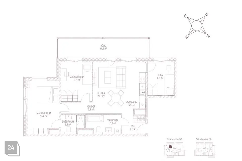 NB! Pildid on tehtud analoogse planeeringuga näidiskorterist, korteri hind ei sisalda mööblit sh köögimööblit!