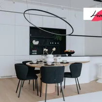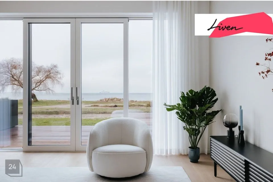 Minimalistliku joonega siseviimistlus toob esile merevaate, mis avaneb kõikide tubade suurtest ja kõrgetest akendest. Selle kodu elutuba on kujundatud helgetes toonides, mida täiendavad üksikud mustad detailid. Saar ja söögilaud sulanduvad ühtseks tervikuks ning puhas valge pind hoiab toa avarana.