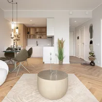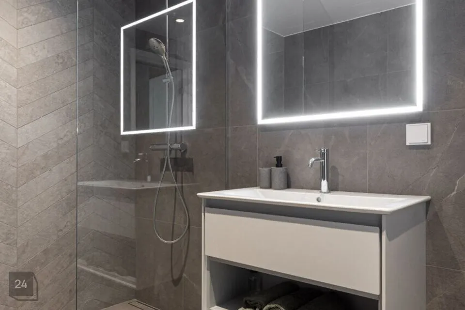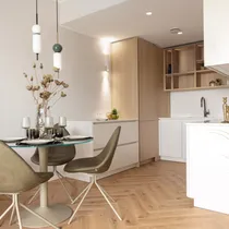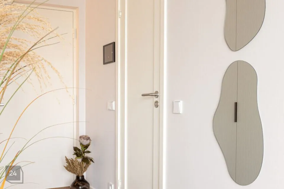 Siseviimistluses on ühendatud kvaliteet ja stiilitunnetus- kasutatud on modernset KLIFF paketti, mida on maitsekalt kombineeritud SKANDI ja JAPANDI elementidega. Eluruumide põrandaid katab elegantne kalasaba parkett, mis haakub ideaalselt duširuumi samas mustris aktsentplaatidega. Valged siseuksed ja liistud lisavad interjöörile avarust ja kergust.
