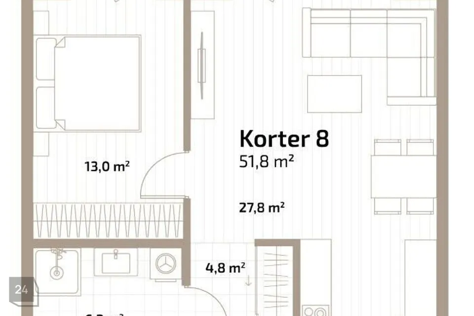 Korter paikneb hoone neljandal korrusel, üldpinnaga 51,8 m², mille juurde kuulub 13,5 m² avar rõdu vaatega rohelusse. Kodu on valgusküllane, tänu maast laeni akendele ning on varustatud targa kodu lahenduse ja jahutuse paigalduse valmidusega.