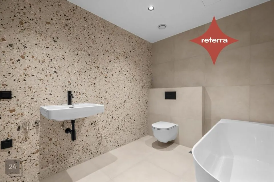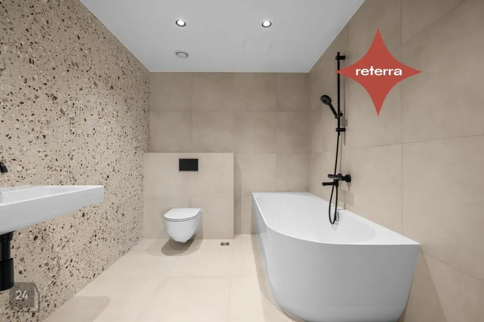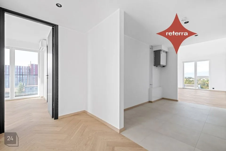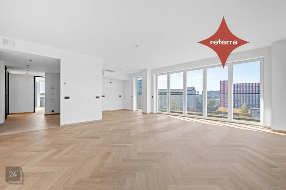 4-toalised korterid võtavad meil enda alla lausa pool maja (vt ka kuulutusele lisatud plaani) ning on väga funktsionaalselt liigendatud! Olemas on 2 vannituba, walk-in garderoob, eraldi nišis köök. Kõikjal maast laeni aknad ja vaated avanevad kolmes suunas. Kõikides korterites hinna sees kliimaseade.