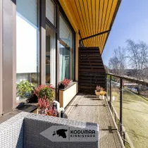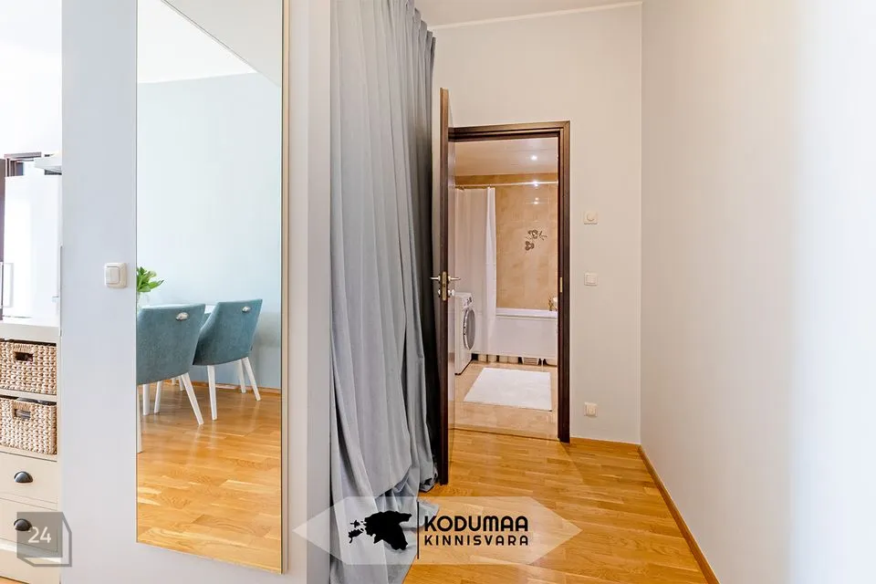 See kõrgete lagedega ja avar kodu pakub avatud ning valgusküllast elukeskkonda. Elutuba ja magamistuba on suunatud maja ette, võimaldades loomulikku valgust terve päeva vältel. Ruumikas terrass annab võimaluse nautida hommikukohvi, lõõgastuda värskes õhus või võtta päikest privaatselt. Korteri üldpind sisaldab 8 ruutmeetrit rõdupinda.