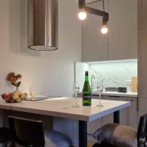 Korteri hind sisaldab: uus köögimööbel integreeritud tehnikaga, sisseehitatud garderoobikapid ning eelarvega kuni 3 000 € mitte-sisseehitatud mööblile