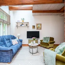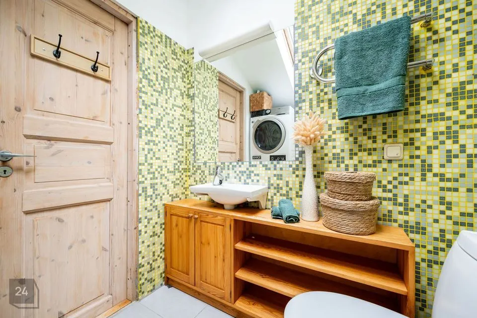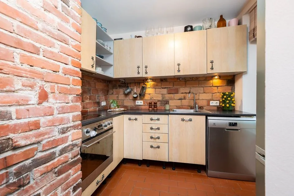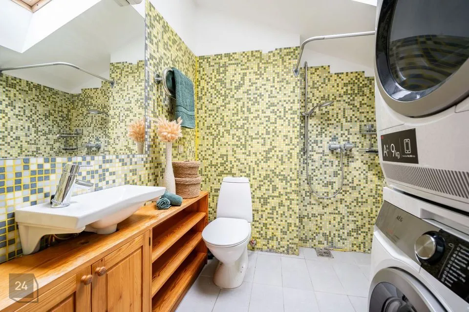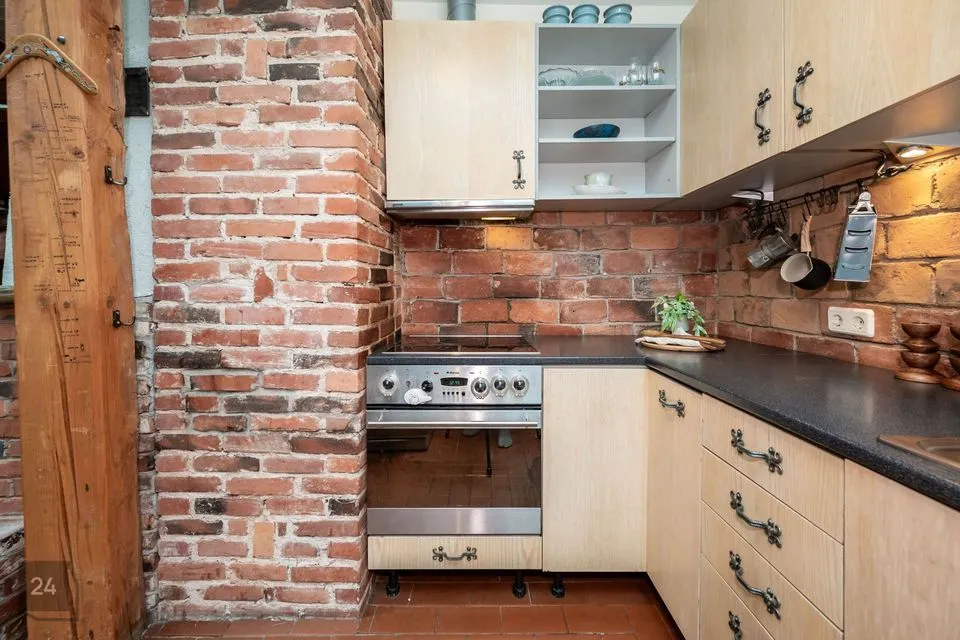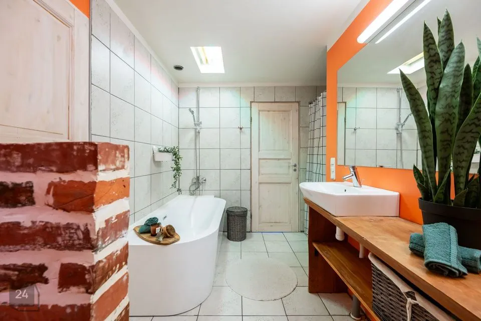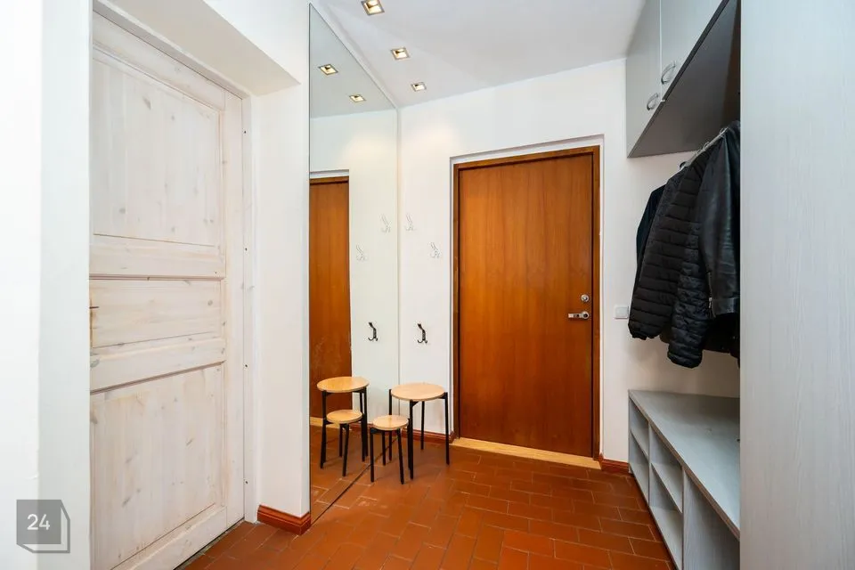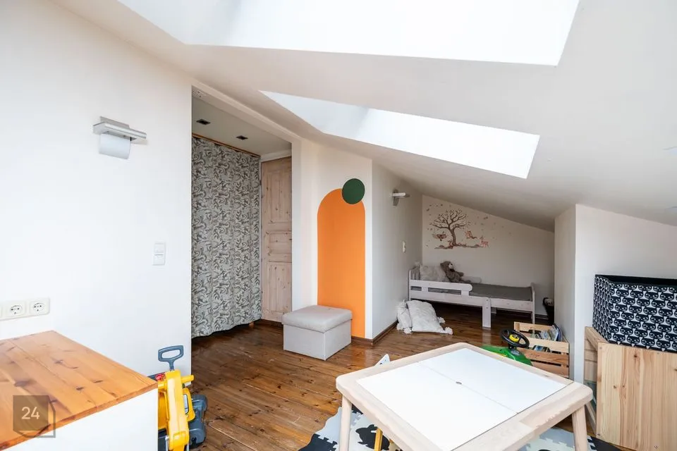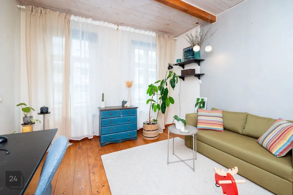 Iseloomu ja avarust lisavad korterile puittalad ja katuseaknad. Põrandaid katab puitlaud, mis on jala all väga soe ja pehme.