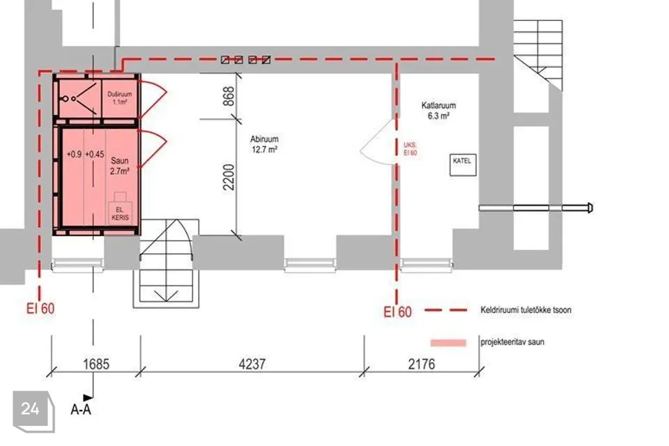 Maja keldrikorrusele on projekti alusel ehitatud korter 5 ainukasutusse eraldi sissepääsuga saun dušinurgaga ja eesruum/tööruum.