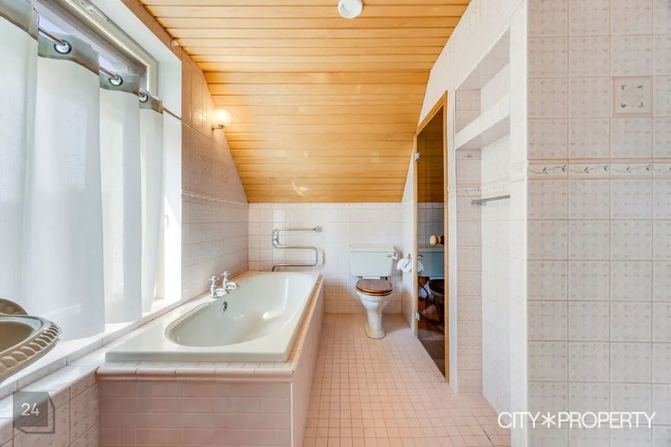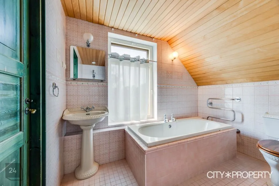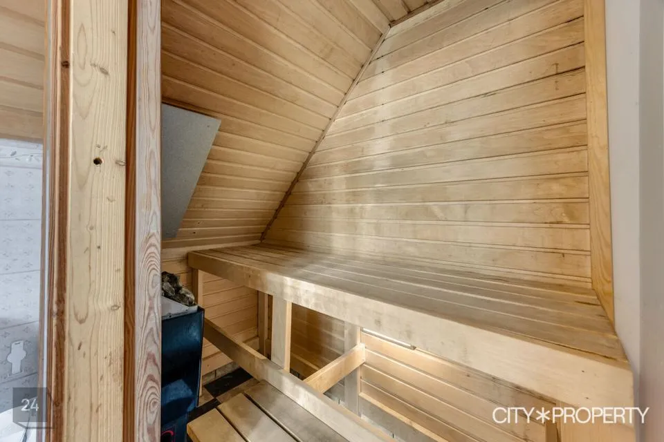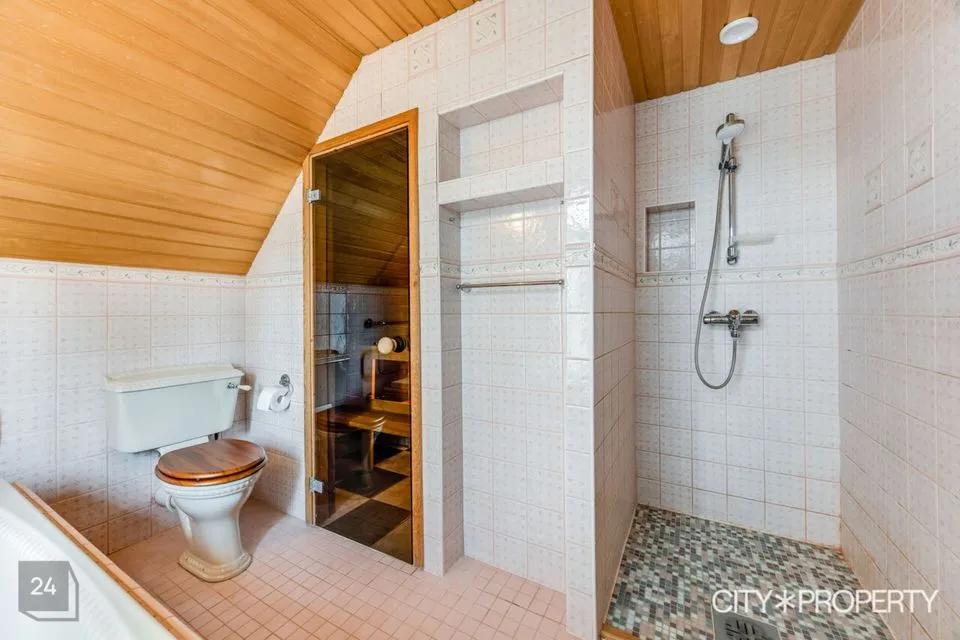 Aknaga vannituba ning tualettruum asuvad koos. Ruumis on nii vann, kui dušš ning samuti kompaktne saun. Põrandale on paigaldatud elektriline küte, mis tagab sooja jalgealuse aastaringselt.