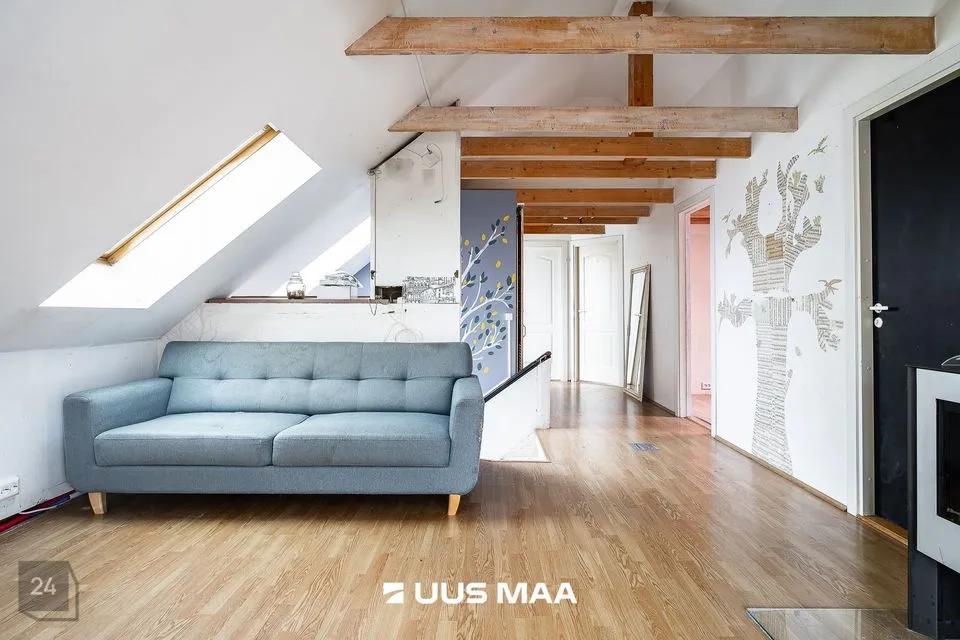 Kristiines, vaiksel Pardi kõrvaltänaval, vaid kolme korteriga kortermajas müüa neljatoaline katusekorruse korter.