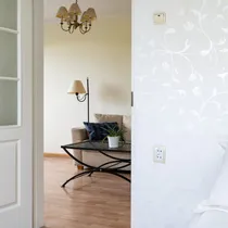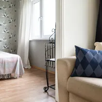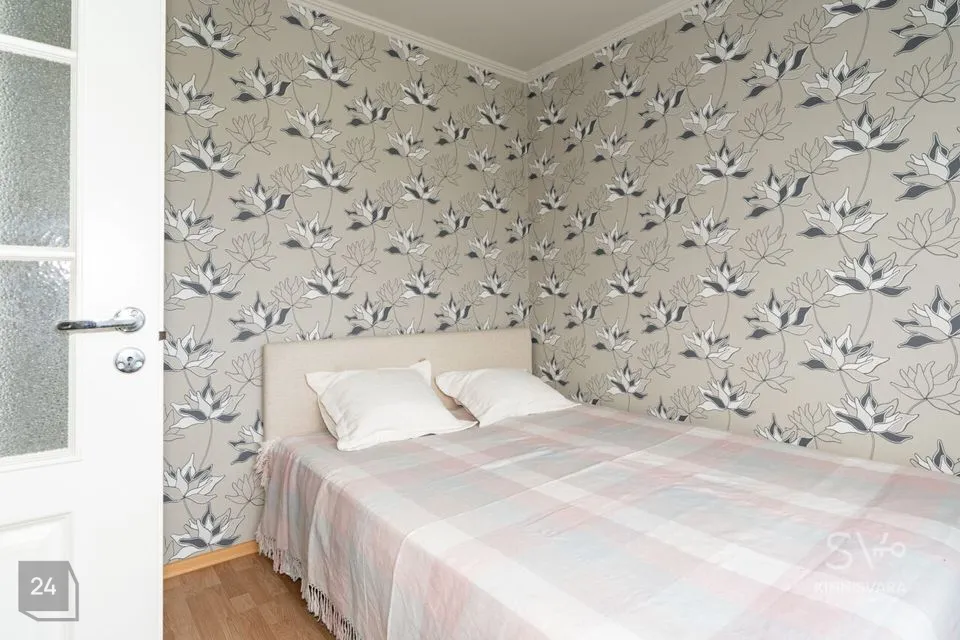 Seinad on osaliselt värvitud, osaliselt kaetud tapeediga. Kõik laed ja seinas on sirgestatud.