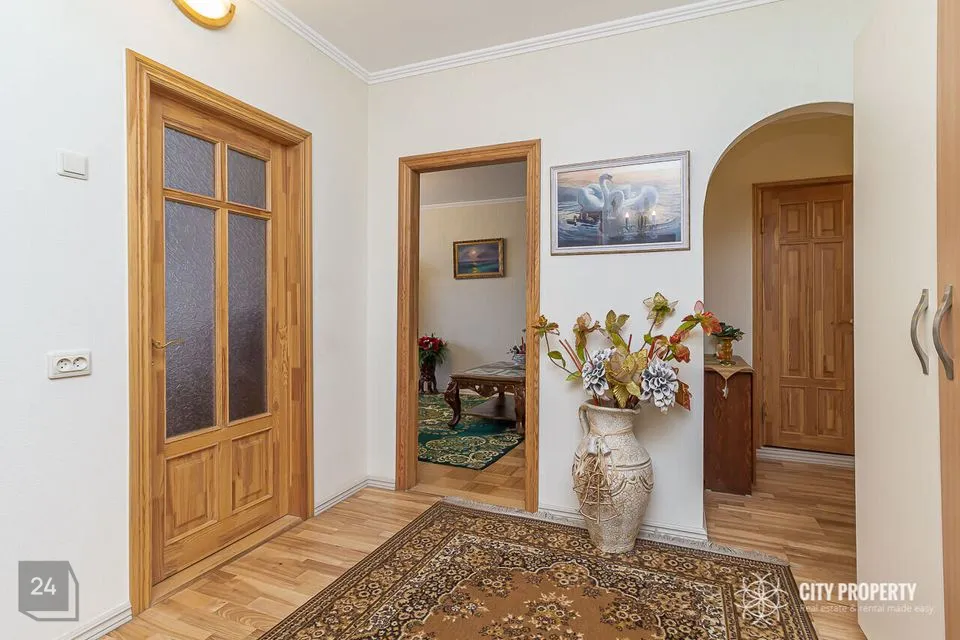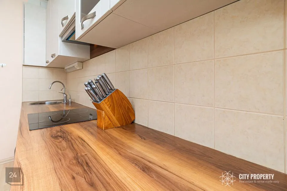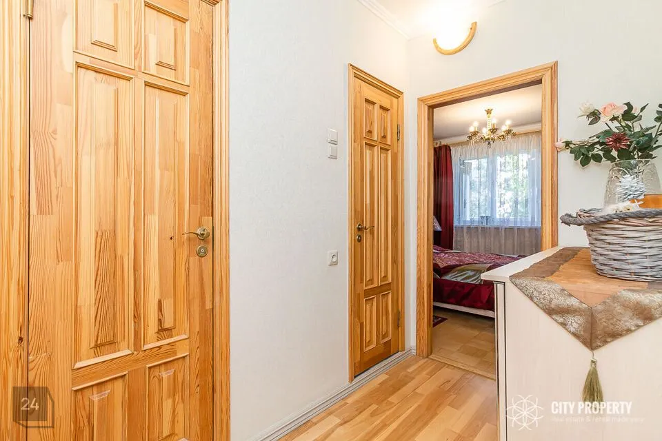 Korter on mõned aastad tagasi renoveeritud. Köögis on maitsekalt kujundatud sisustus koos vajaliku tehnikaga – keraamiline pliit, elektriahi, kubu, mikrolaineahi, külmkapp, nõudepesumasin ja pesumasin. Suures magamistoas on mugav ja stiilne voodi, öökapid, kummut ja raamaturiiulid. Väiksemas magamistoas on diivanvoodi ja suur sisseehitatud kapp. Elutoas on kaasaegne mööbel – diivan, diivanilaud, seinakapp, TV-alus televiisoriga ja põrandakell. Uuele omanikule jääb kogu korteri sisustus.