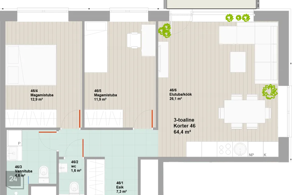 Korter müüakse koos köögitehnika ja osaliselt mööbliga:
