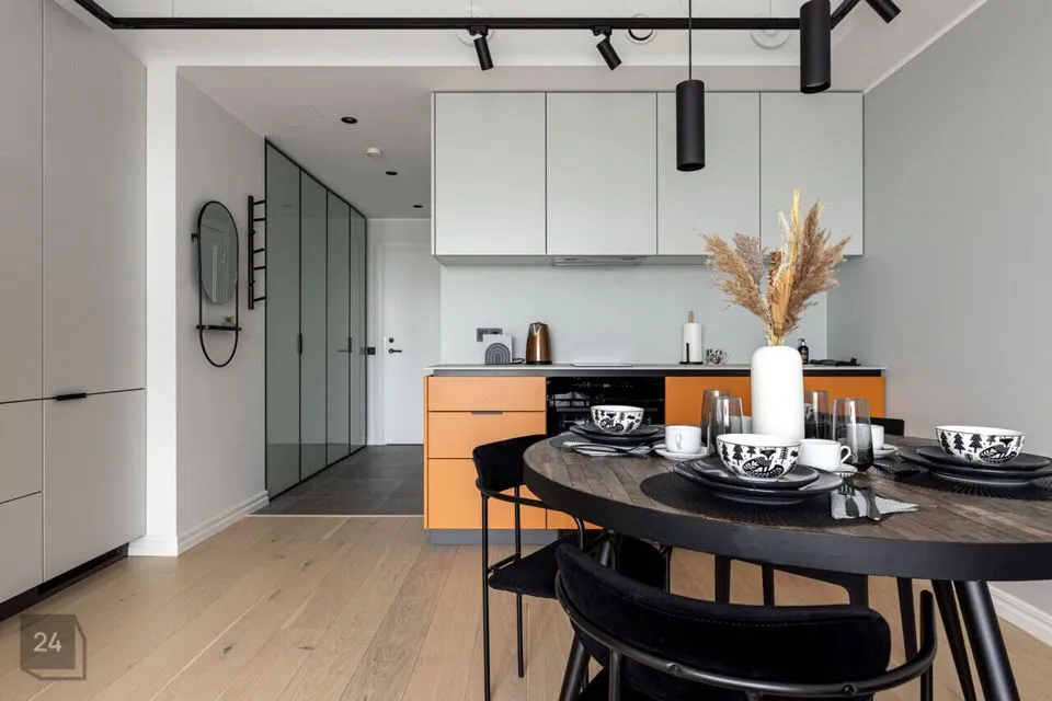 * Kööginurgas stiilne söögilaud ja toolid.