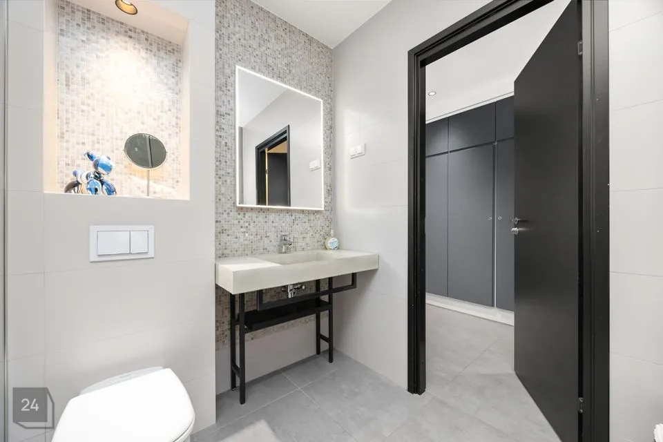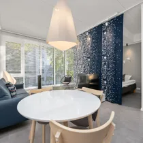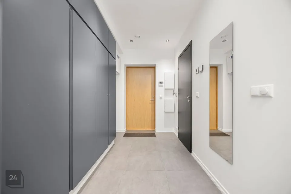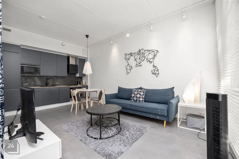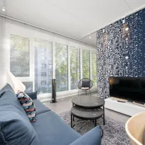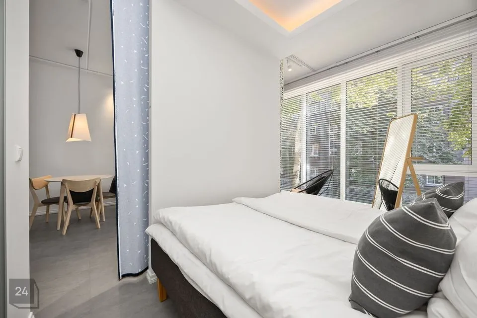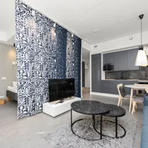 Korteri südameks on avar elutuba, mille kõrged laed (2,9 m) ja heledad toonid loovad õhulise ning elegantse atmosfääri. Interjöör on loodud sisearhitekti poolt, kes vastutas ka kogu hoone üldalade kujunduse eest, mistõttu on korteri sisearhitektuur terviklik ja läbimõeldud. Elutoas ja magamistoas on kasutatud kvaliteetseid eritellimusel valmistatud mööblilahendusi ja looduslikke materjale, mis rõhutavad põhjamaist stiili ja kestvat väärtust.
