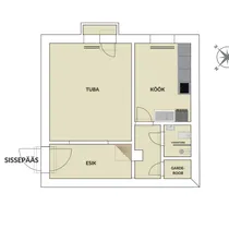 Korter on koosneb avarast elutoast, mahukast köögist, koridorist ning vannitoast. Olemas on ka eraldi sissekäidav garderoob/panipaik. Kõrged laed annavad ruumile avarust ja elegantsi.