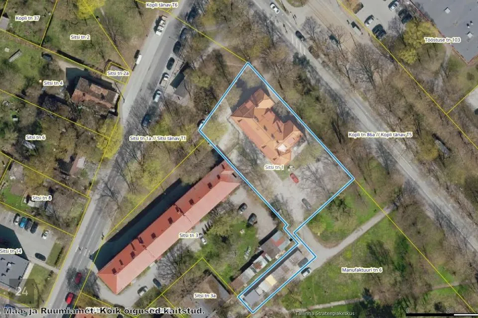 Sitsi ja Kopli tn nurgal, maja on ümbritsetud suurte põlispuudega. Hoovi osa piiratud aiaga. Üle tee on Tööstuse tn RImi, ca 400m Maxima kauplus. Karjamaa Põhikool vaid 200m kaugusel. Maja kõrval nii Sitsi bussi- kui ka trammipeatus. Telliskivi Loomelinnakusse 2km.