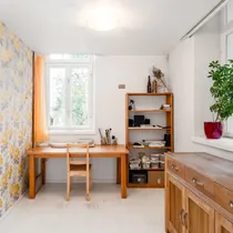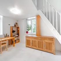 Tänu kõrgetele lagedele on korteris tehtud nii kööki kui tubadesse laealused platvormid, mille kõrgus on 1,45m. Köögi ja ja duširuumi pealne osa on kasutusel asjade hoidmiseks ja panipaigana, elutoa ja magamistoa osas olevad pinnad on kasutuses laste magamistoana.