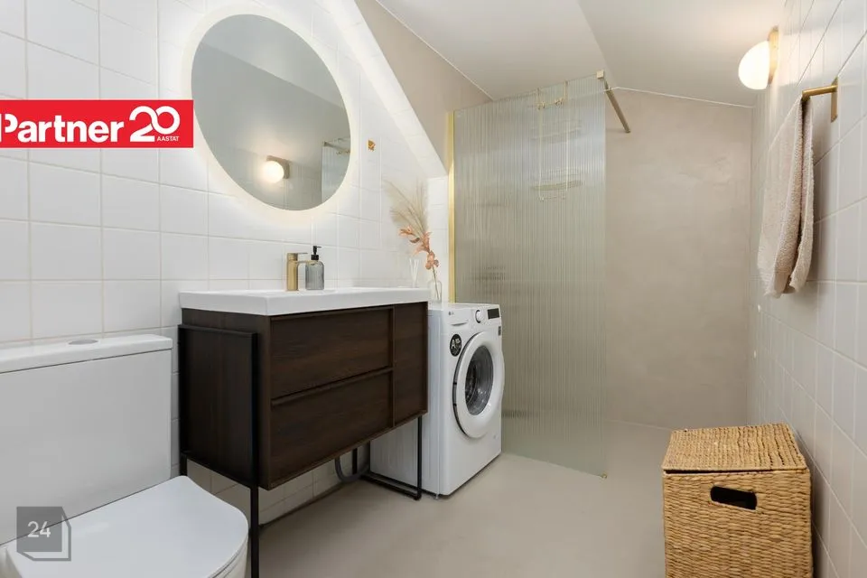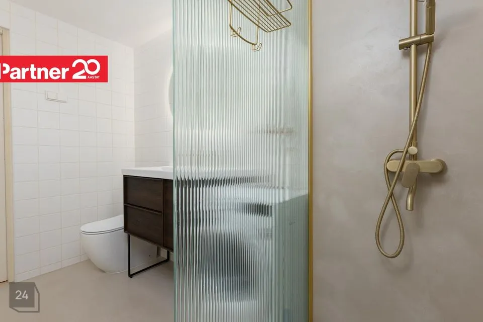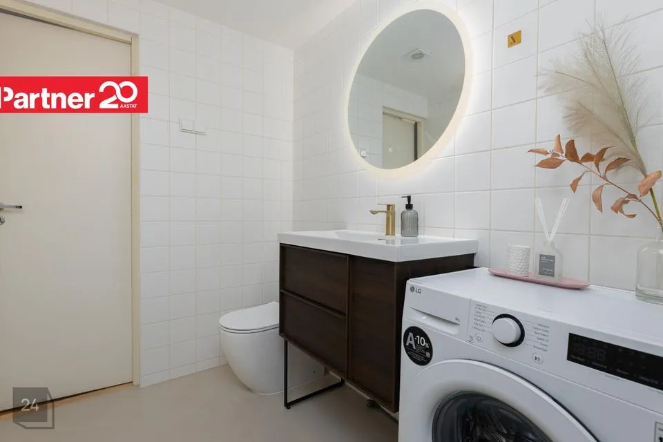 * Vannituba/WC , mis on läbinud põhjaliku renoveerimise. Vannituba kus kohtuvad kaasaegne mikrotsement värv ja nostalgilised plaadid. See eriline kombo tagab väga hubase lõpptulemuse.