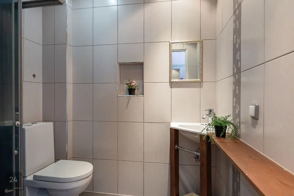 * Vannituba/WC – kaasaegse plaaditud viimistlusega ja dušinurgaga.