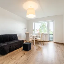 В состав квартиры входят: прихожая, кухня, гостиная, 2 спальни и ванная комната/туалет. Из гостиной есть выход на балкон, где можно насладиться солнцем первой половины дня.