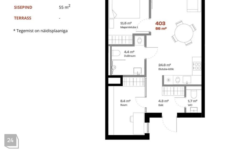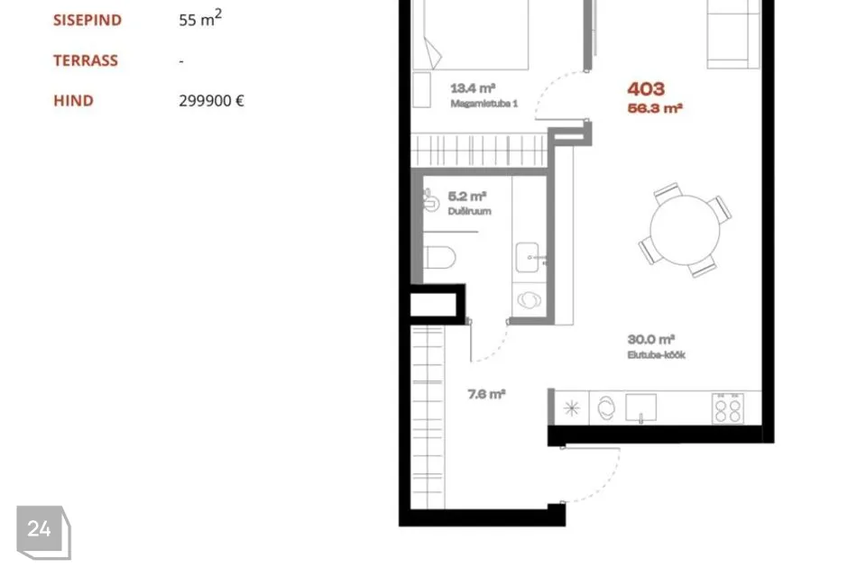 Korteri saab luua nii 2- kui 3-toalisena. Vali ise, kumb sobib paremini sinu elustiiliga! Lisatoa saab eraldada ka klaasist seintega, et säilitada rohkem valgust.