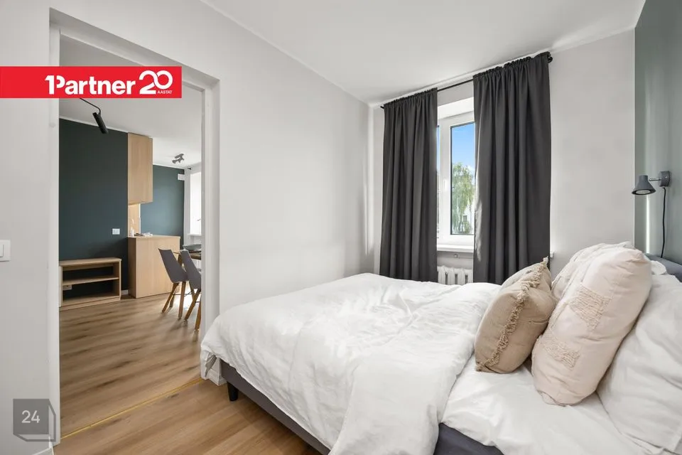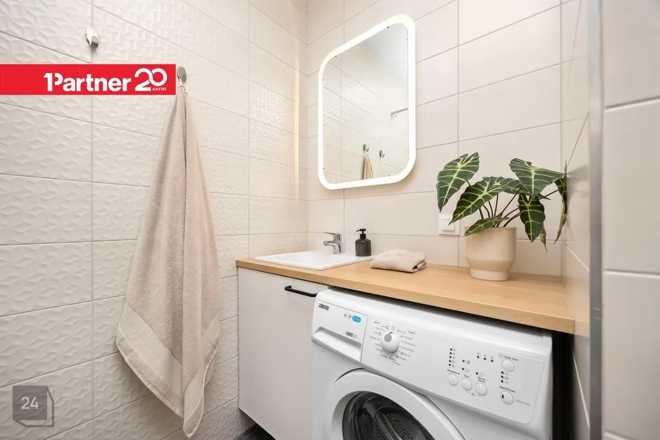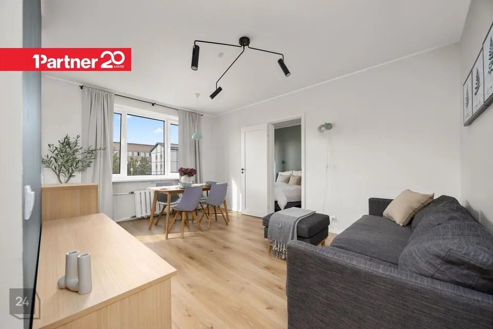 Maitsekas korter asub hoone kolmandal korrusel ning on meeldivalt valgusküllane. Elutuba ja köök on avatud planeeringuga ning magamistuba asub eraldiseisvana. Magamistuppa on tekitatud palju mahutav walk-in garderoob. Köök on varustatud muu tehnika hulgas ka nõudepesumasinaga.