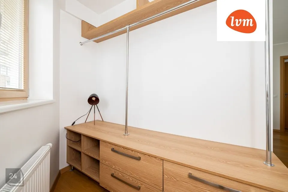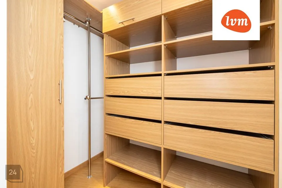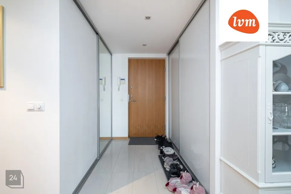 Esik, kus on kaks sisseehitatud garderoobikappi; avatud köök-elutuba, kust pääs rõdule; põhimagamistuba, kus on veel eraldatud garderoobinurk ja pääs samuti rõdule; pesuruum ja veel üks magamistuba.