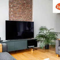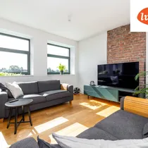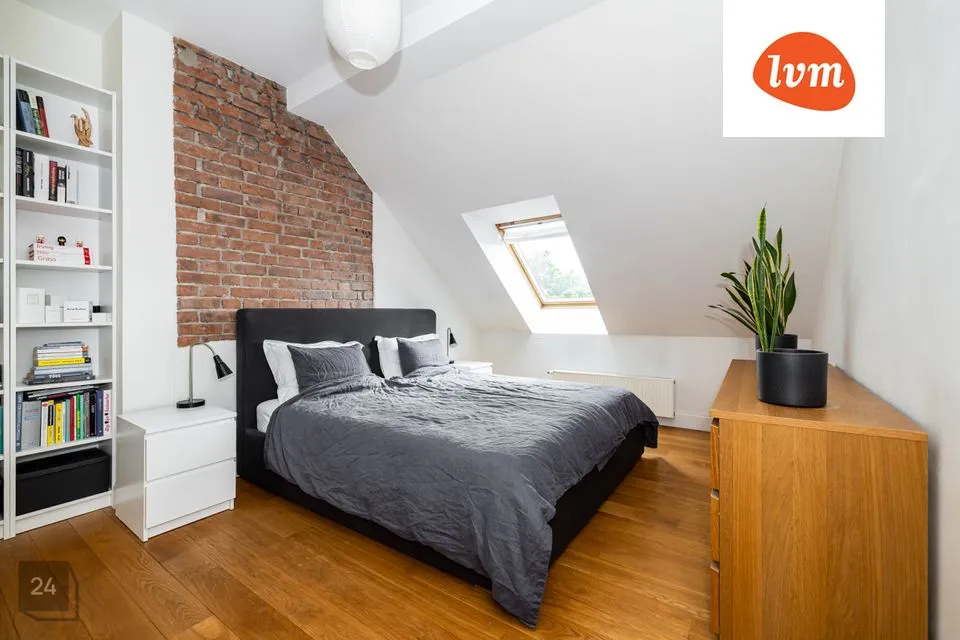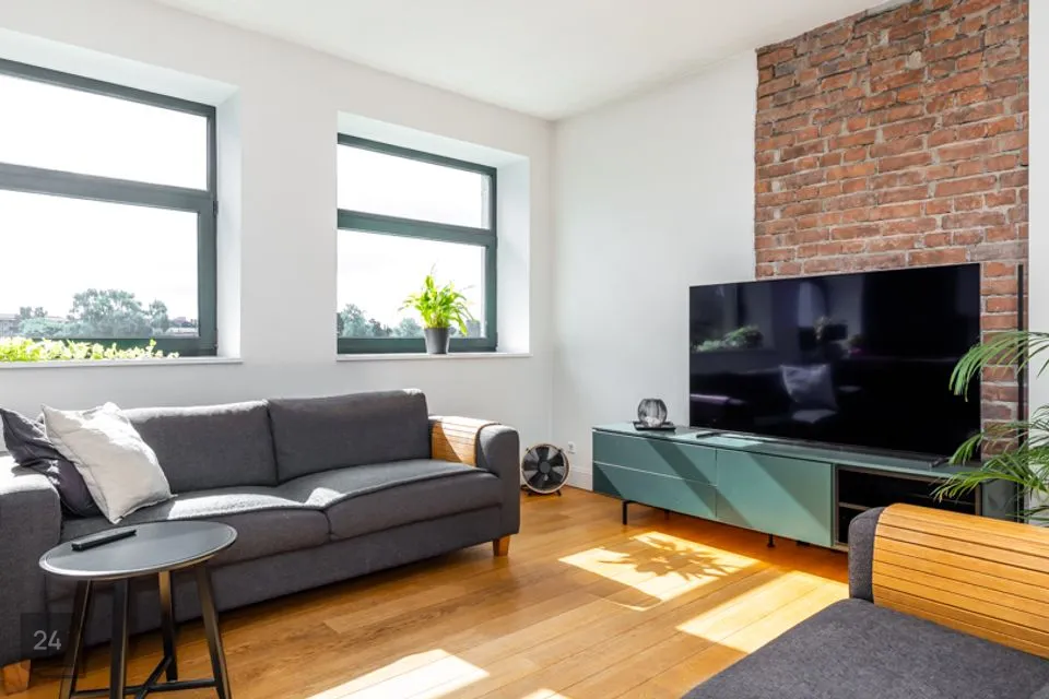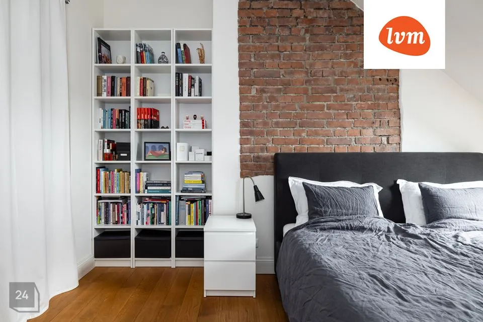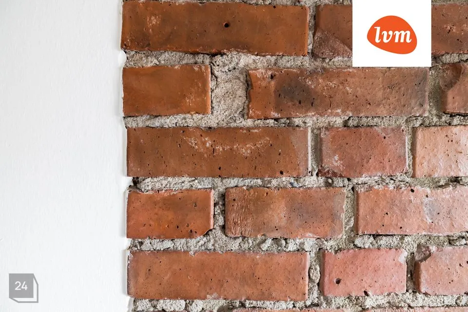 Elu- ja magamistoas on eksponeeritud vana tellissein.