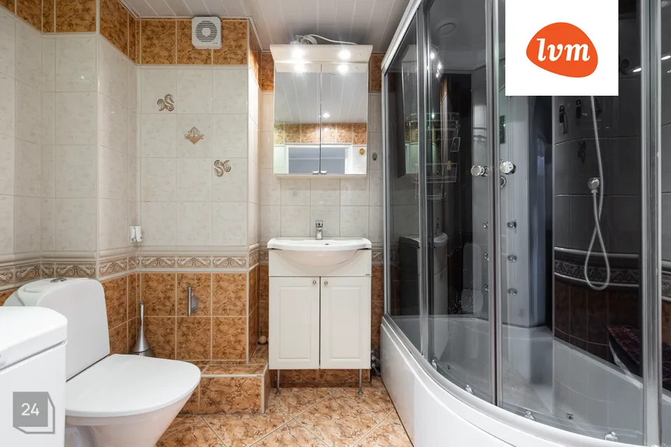 Toa põrandaid katab kilp-parkett, ühes magamistubadest on hiljuti paigaldatud uus puitparkett. Värskendatud seinu tapeediga.