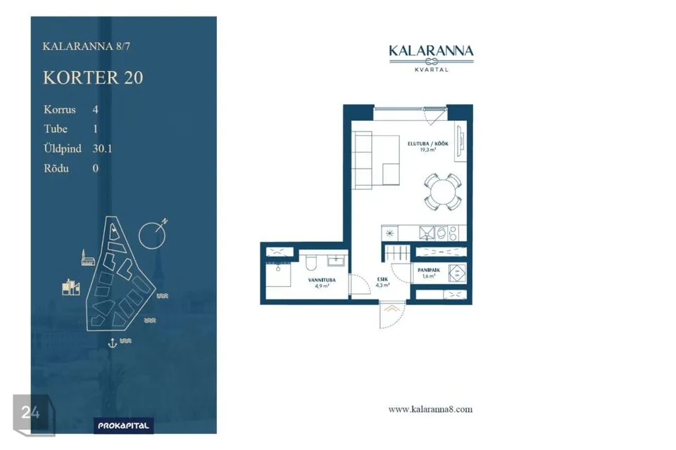 Kalaranna 8/7 hoone 4. korrusel paikneb otsese merevaatega 1-toaline stuudiokorter, suurusega 30,1m2. Korteris avanevad unikaalsed ja kaunid vaated avarale Tallinna lahele. Korter müüakse koos siseviimistlusega, võimalik kohe sisse kolida!