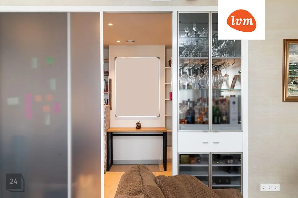 Eraldi, suure sisseehitatud garderoobiga esikuosa kus paikneb ka külaliste tualet. Elutuba jaotub kolmeks: avatud köök, einestamisala ning elutoa ja oleskelu osa. Köögis on kvaliteetne ja funktsionaalne köögimööbel ning tehnika, lisaks tavapliidile on näiteks olemas ka wok-, grill ja gaasiplaadid, tehnika valdavalt SMEG. Üks tubadest on kabinet-töötuba mis on eraldatud elutoast lükandustega. Magamistoast on pääs terrassile ja eraldatud vannituppa ning garderoobi. Vannitoas vann, dush/aurusaun ja tualet.