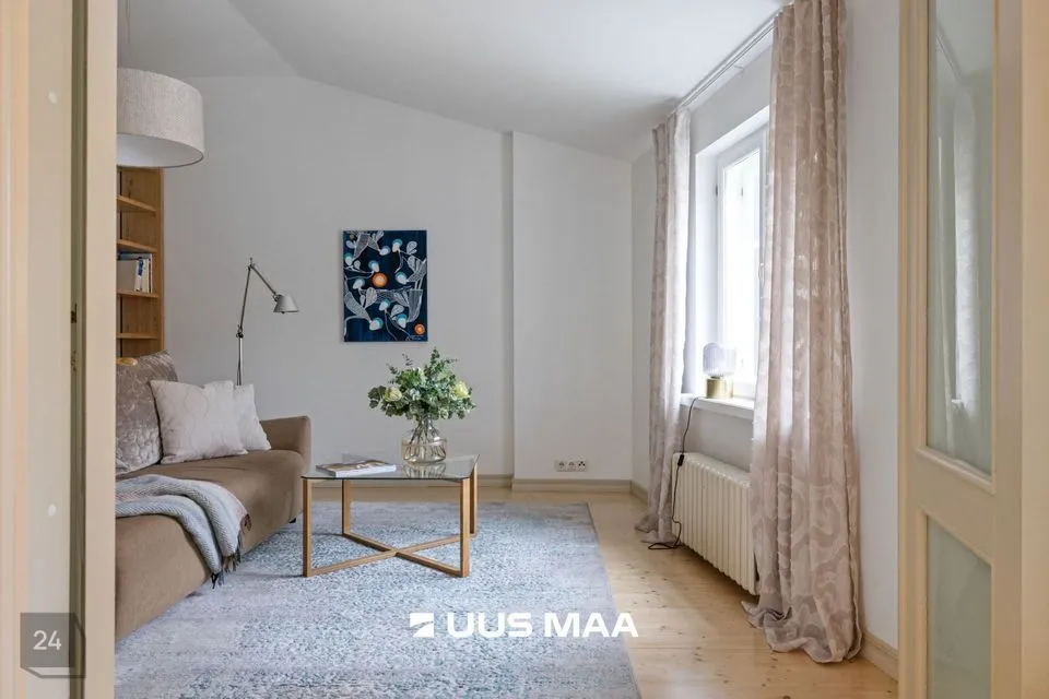 Värskelt renoveeritud, privaatne ja vaikne korter on avar ja väärika atmosfääriga. Vaated akendest vanalinna katustele, Niguliste kiriku ja Raekoja platsi suunas. Põrandaid katab laudparkett. Aknad on kahekordsed puitaknad.