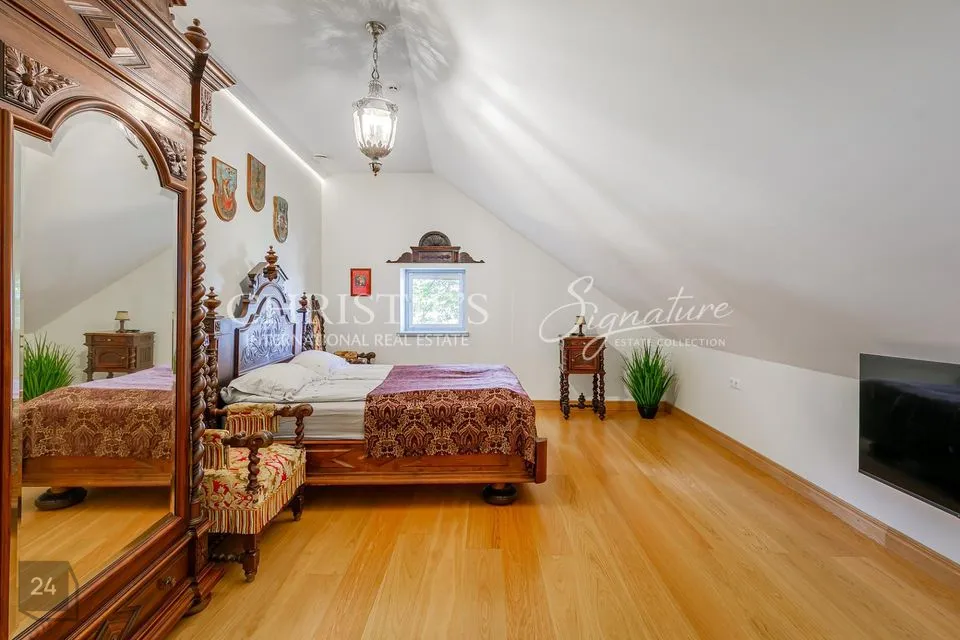 Korteri koosseisu kuulub suur söögituba koos avatud köögiga, elutuba koos kaminaga, vannituba ja magamistuba. Ülemisel korrusel asub suur magamistuba koos vannitoaga. Magamistoad on väga avarad. Mõlemal korrusel on jahutus. Korter müüakse möbleerituna.