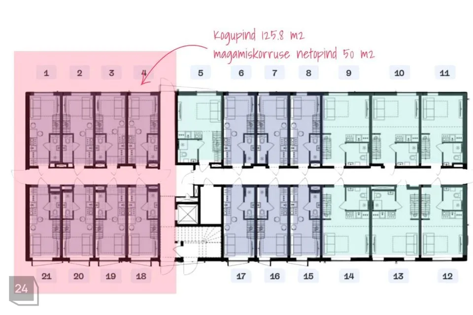 Esimese korruse netopind kokku 125,8 m2, magamiskorruse võimalik netopind kokku 50 m2. Äripind on rendile antud.
