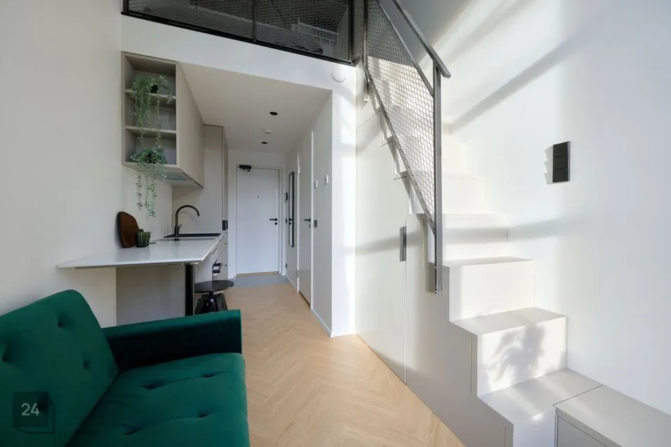 Igas loftis on esimesel tasandil köök-elutuba, esik, duširuum, teisel tasandil on magamisruum.