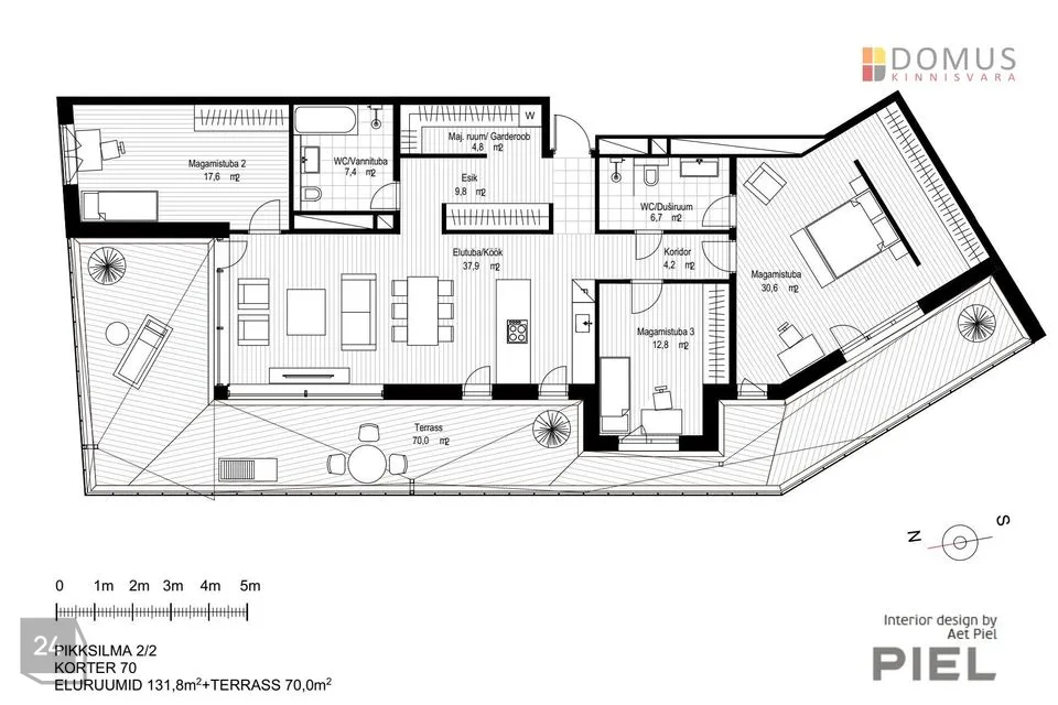 “See on ju linna parim korter” – ütled tõenäoliselt, kui siia sisse astud. Parimat tahta tõesti ei oskakski: asukoht prestiižseimas piirkonnas Kiikri kvartalis mere ja Kadrioru pargi vahel, tänavamürast eemal Pikksilma 2/2 majas, maja viimasel, 5.korrusel. Maja eksklusiivseima terrassiga korter, kus 70 m² suurune terrass lookleb ümber maja just selliselt, et püüab nii lõunaseid kui õhtuseid päikesekiiri. See tähendab kõiki päikeseloojanguid Sinu koduakna taga, otse merre, saabuvate reisilaevade taustal.